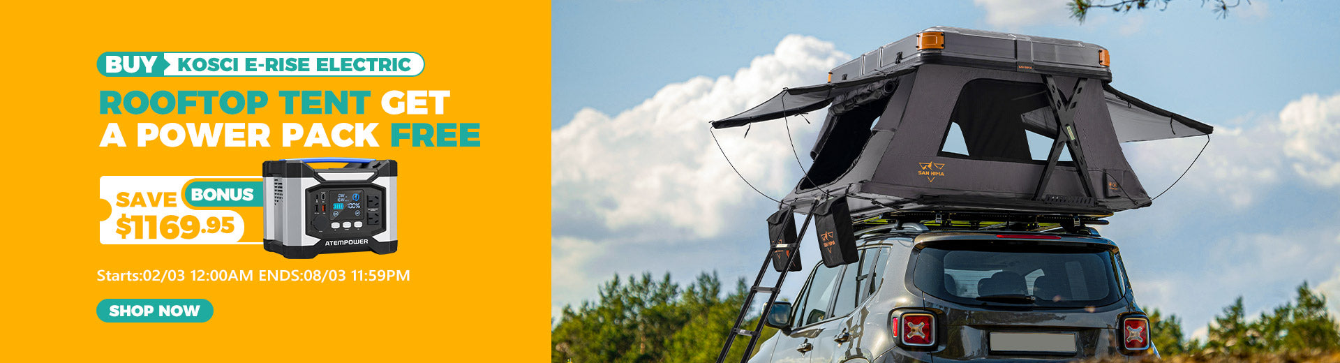 San Hima Kosci E-rise Electric Rooftop Tent Hardshell Automatic Camping Outdoor